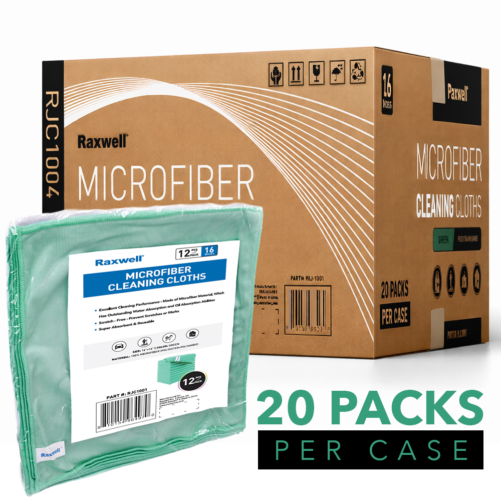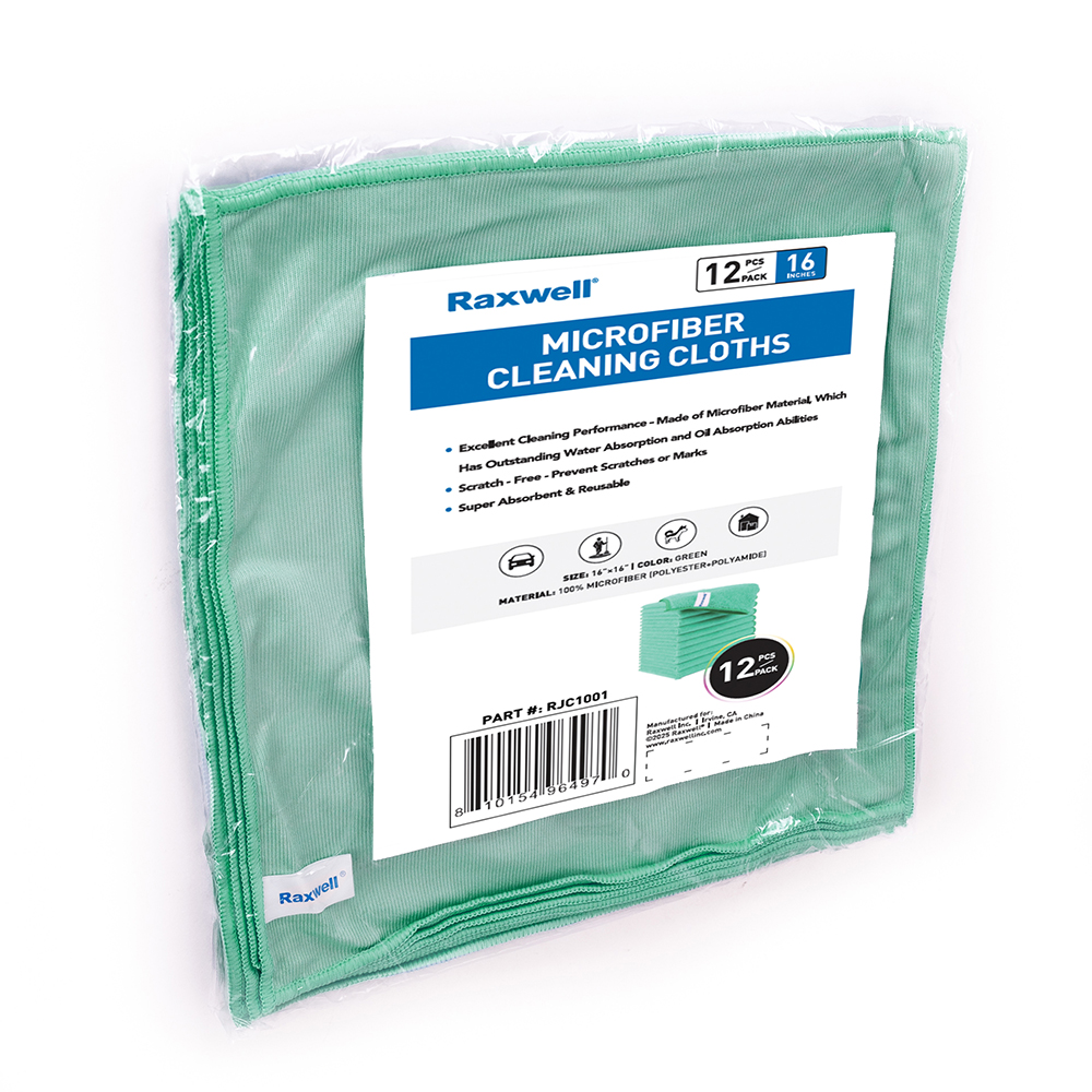 Raxwell general-purpose microfiber cloths deliver powerful absorption, superior dirt pickup, and streak-free cleaning across a wide range of surfaces. Ideal for janitorial teams, facility maintenance crews, automotive shops, restaurants, and industrial environments.